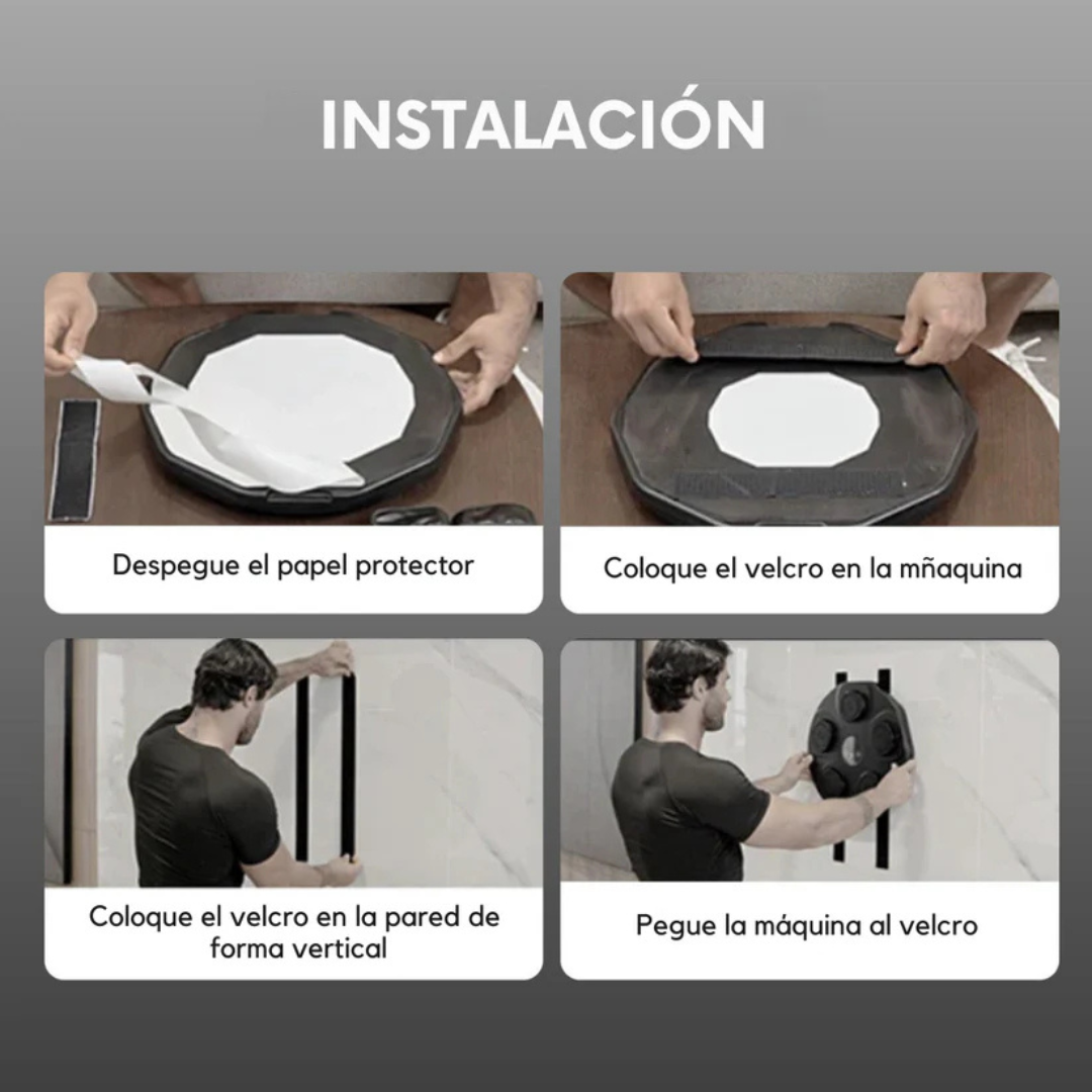 Para instalar la máquina de boxeo musical, utilice el hardware de montaje incluido y siga las instrucciones del manual del usuario. Asegúrese de que el dispositivo esté montado de forma segura en una pared que pueda soportar su peso y la fuerza de los golpes.